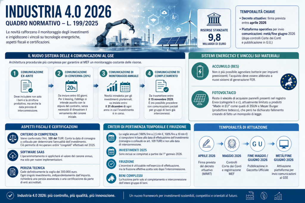 Il quadro normativo di Industria 4.0 2026 (rif. L. 199/2025) si arricchisce di dettagli tecnici fondamentali a seguito degli ultimi incontri tra il Ministero delle Imprese e del Made in Italy (Mimit) e le parti sociali.
