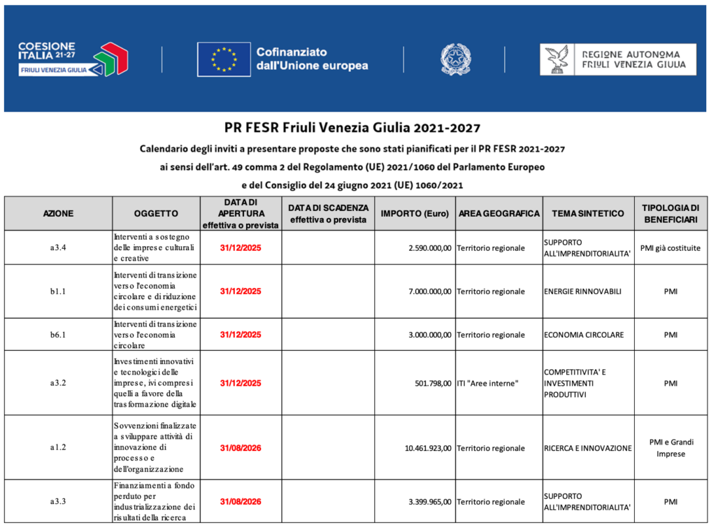 PR FESR 2021-2027 – Tipologia d’intervento b1.1.1 –Incentivi per l’efficientamento energetico nelle imprese del settore del manifatturiero – bando 2025- apertura 15/12/2025.